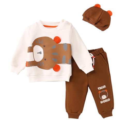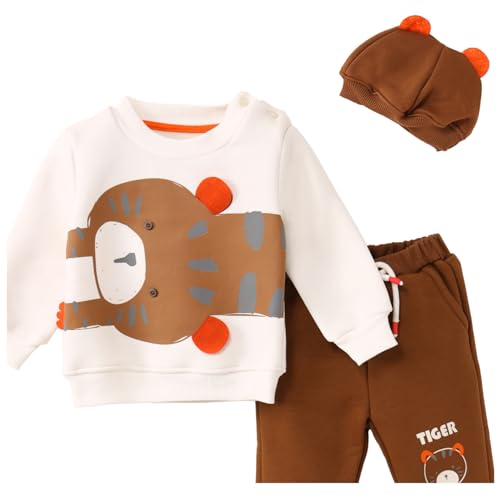 SIKA - SIKA Boys Pajama Set Of 3 Pieces Long Sleeves Sweatshirt,Pants&Hat Printed Tiger Pajama Set (pack of 3)