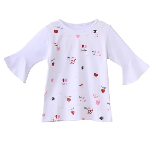 SIKA - بلوزة سيكا بطبعة قلوب للبنات من روزس جاردن، أبيض، 10 سنوات