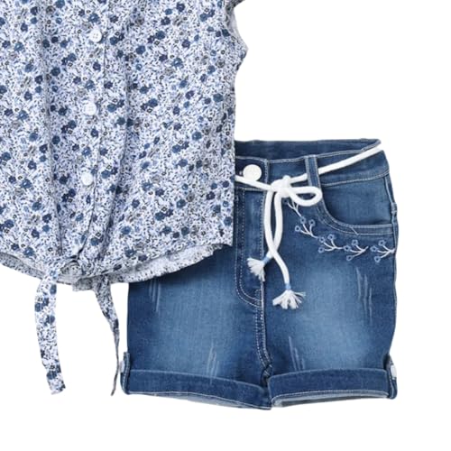 SIKA - SIKA Girls Set of 2 Pieces Sleeveless Patterned Shirt&Jeans Shorts Set of 2 Pieces