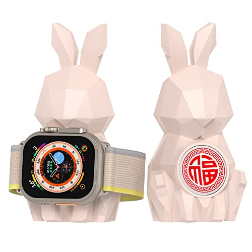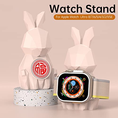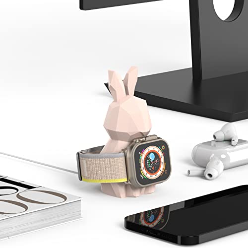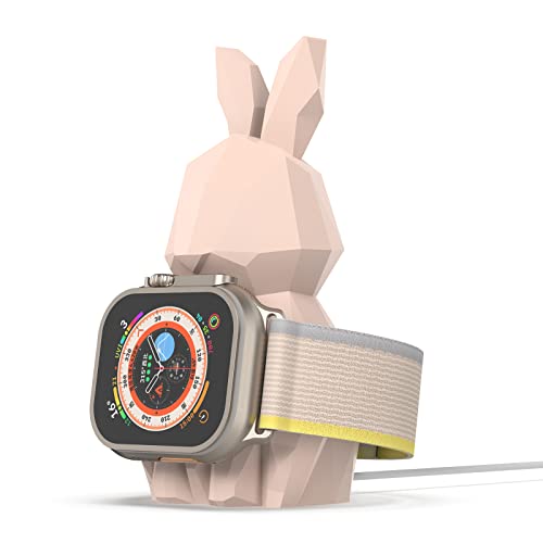 SIKAI CASE - SIKAI CASE Cute Geometric Rabbit Charger Stand Compatible with Apple Watch Series Ultra/8/7/6/SE/5/4/3/2/1 (45mm, 44mm, 42mm, 41mm, 40mm, 38mm), Soft Silicone, Nightstand Mode, Home/Office Use (Pink)