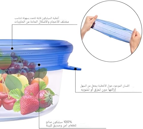 - Versatile and multi-purpose, these stretchy silicone lids are compatible with microwaves, ovens, dishwashers, and refrigerators. They can cover a variety of foods such as cooked meals, fruits, salads, sauces, and beverages like coffee, tea, and juices, plus larger items like watermelon halves.