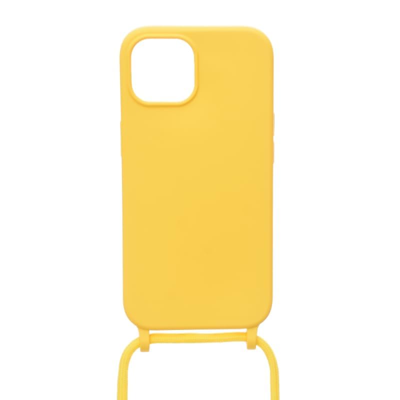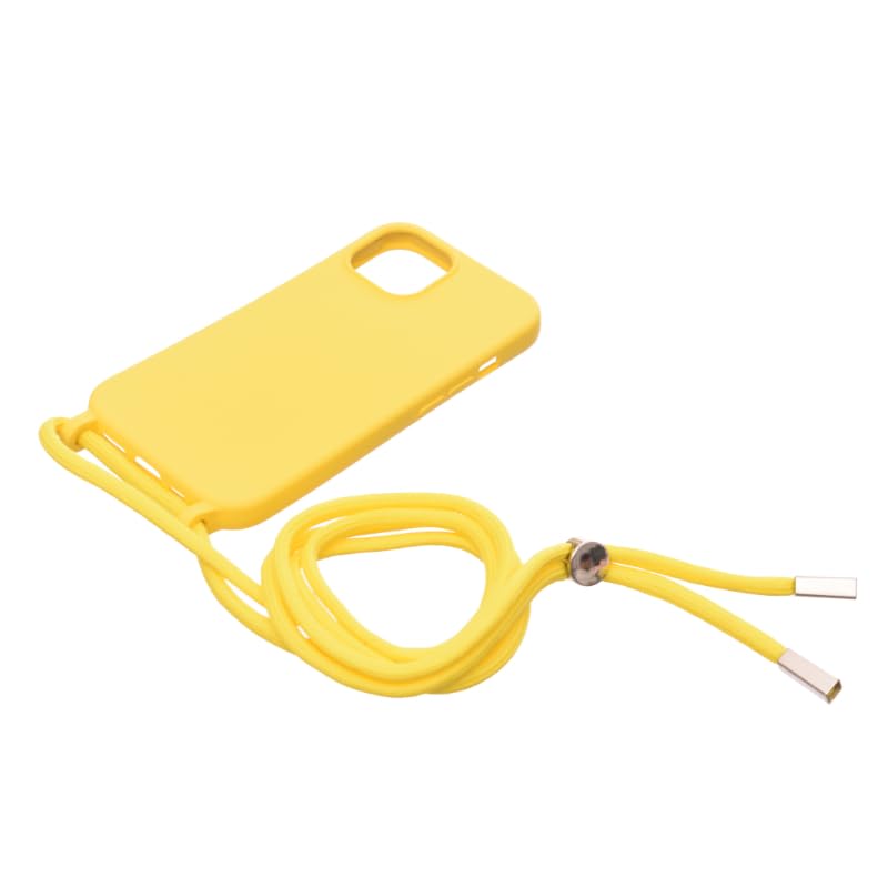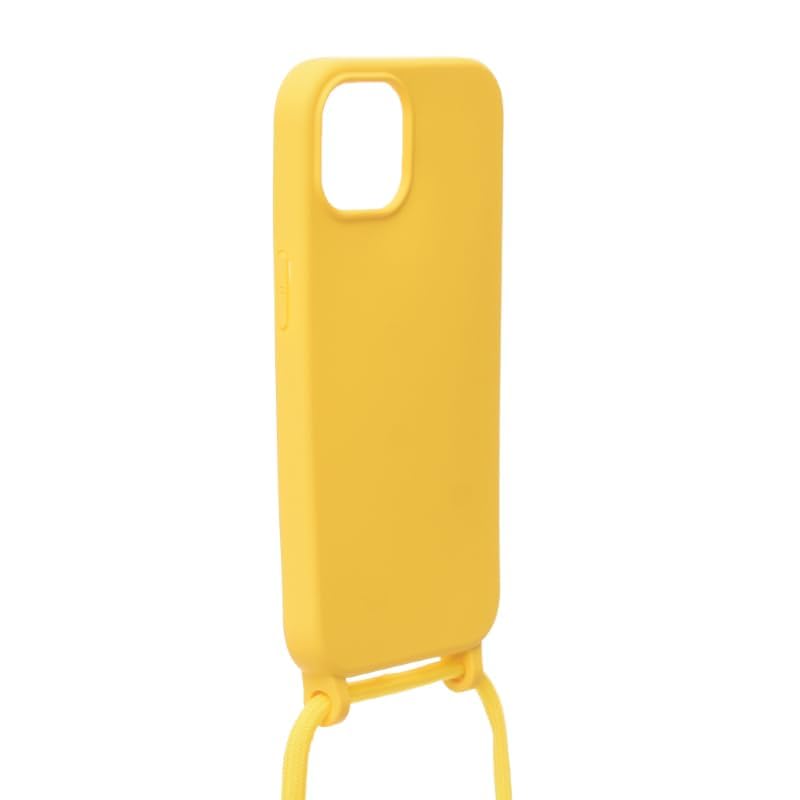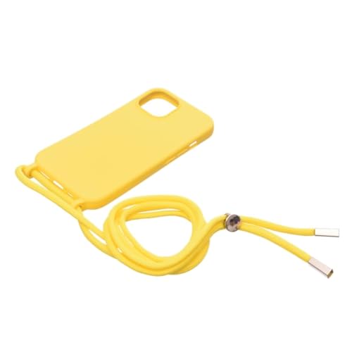 Generic - جراب حماية خلفي من السيليكون مع حزام قماشي وحواف أمان لموبايل ايفون 15 - لون أصفر