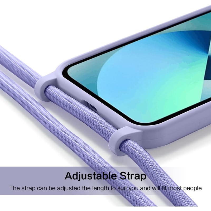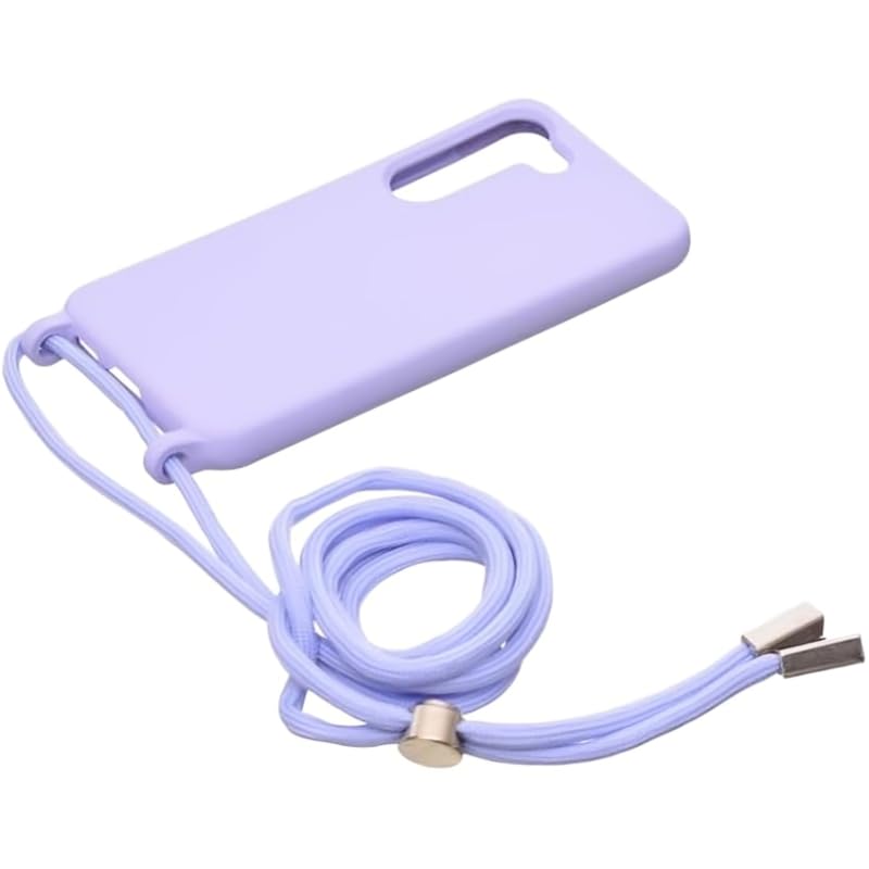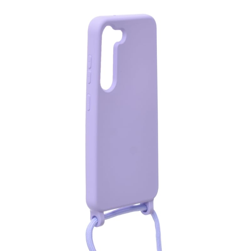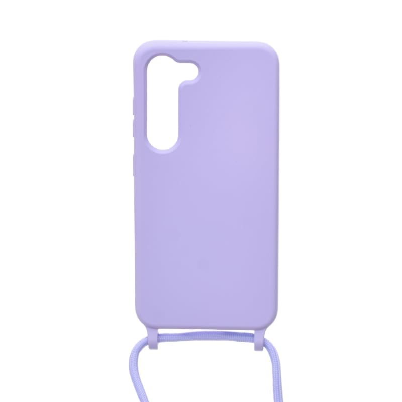 Generic - جراب حماية خلفي من السيليكون مع حزام قماشي وحواف أمان لموبايل سامسونج جالاكسي S23 ، لون أرجواني فاتح
