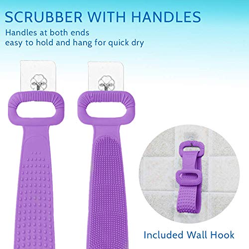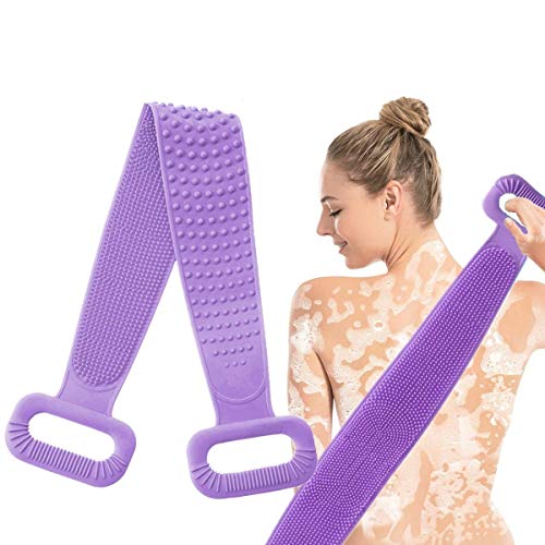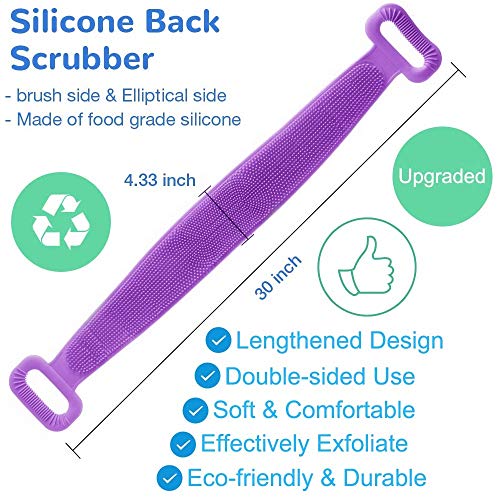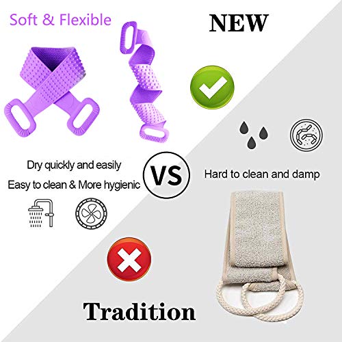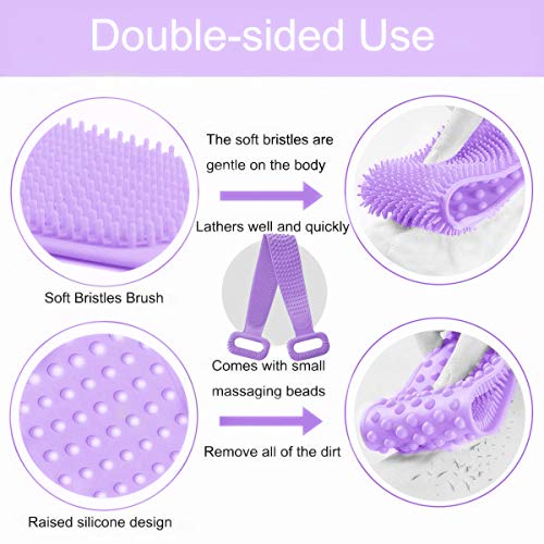 HNRLOY - فرشاة تنظيف الظهر من السيليكون للاستحمام مصنوعة من مواد آمنة غذائيا، سهلة التنظيف وصديقة للبيئة وتدوم طويلا للتقشير وتنظيف الظهر والتدليك (أرجواني)