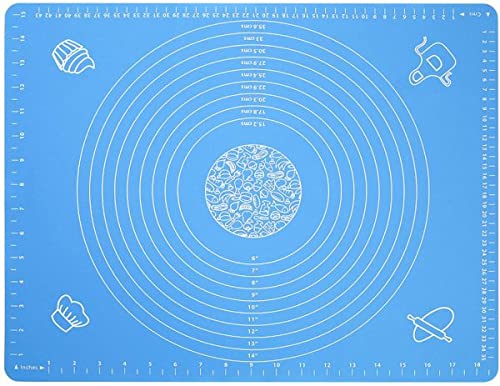 Generic - مفرش خبز سيليكون لعجين العجين مع قياسات - 19.7 × 15.7 انش خالي من البيسفينول ايه وغير لاصق وغير قابل للانزلاق، مفرش طاولة ازرق لخبز الكيك والبيتزا، 09879956
