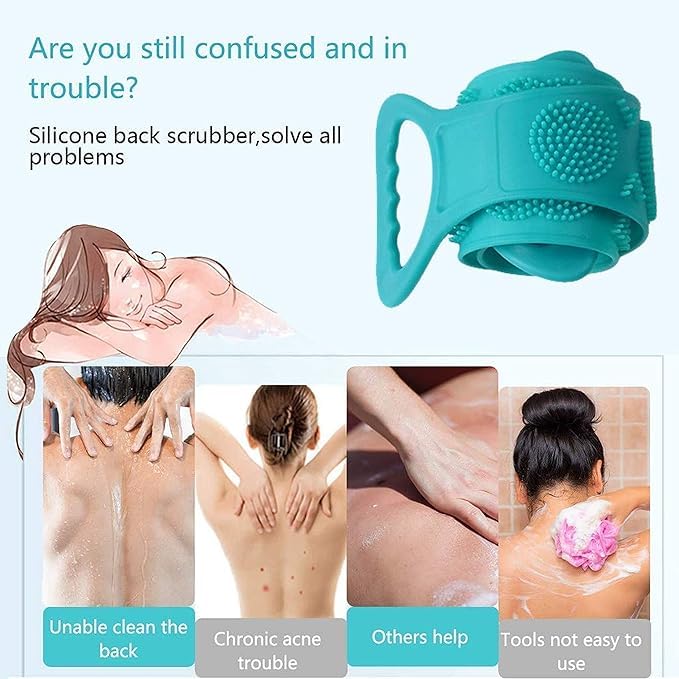 - DOUBLE-SIDED FUNCTIONS: The surfaces of silicone shower brush is designed for different functions. The fine rubber bristles surface is for fast bubbles and large area cleaning while the raised massage bump side is for rubbing ash and mud, massage and relax your body. Thus it not only can effectively exfoliate your skin but also offer soft and comfortable massage on your back, you will feel fully relaxed after a tired and busy day.