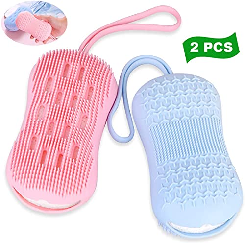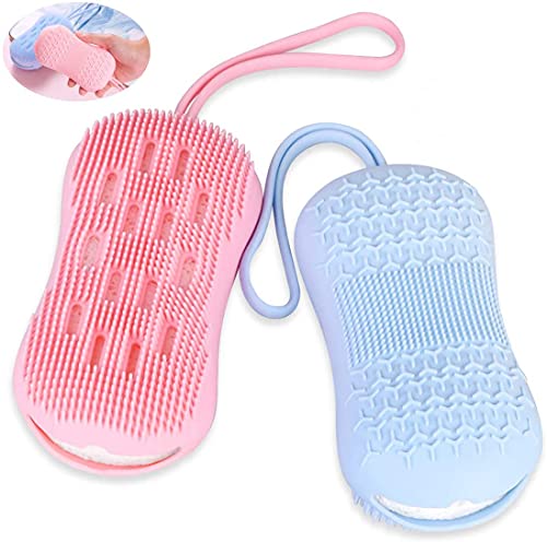 - ❤【2 Pcs Silicone bath body brush】Our bath brush shower body scrubber is more effective than using your hand, a washcloth, or a bristle brush to cleanse your skin. silicone is a soft and safe material that can help exfoliate your skin and can reduce cellulite in problem areas, It also improves vascular blood circulation, helps evenly distribute fat deposits, and helps your skin release metabolic waste and toxins.pink and blue, suitable for adults and children .