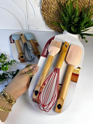 - تتضمن ثلاث أدوات أساسية: خفاقة من السيليكون، وملعقة سباتولا سيليكون، وفرشاة سيليكون، تغطي احتياجات المطبخ الرئيسية للخلط والخبز.