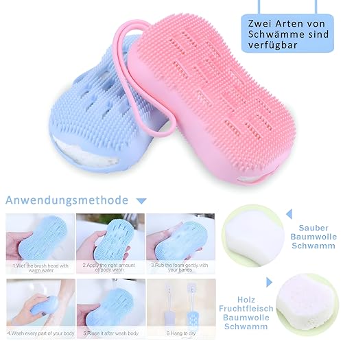 - Turn every shower into a refreshing ritual with a dual-sided silicone body brush and exfoliating sponge, crafted with a unique short-bristle layout that delivers thorough cleansing and gentle exfoliation while protecting your skin from over-scrubbing and irritation.