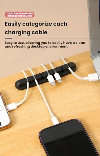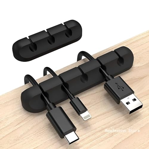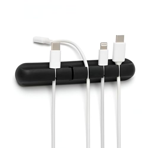 Generic - مشبك كابلات سيليكون - منظم ذاتي اللصق مزود بخمس فتحات قابلة للتعديل لحمل أسلاك كهرباء الكمبيوتر وأسلاك الشاشة وشواحن أجهزة التابلت وأسلاك المكتب، سهل التركيب والإزالة من مكان العمل، لون أسود