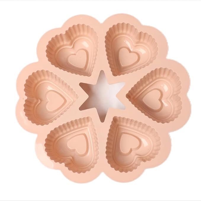 Generic - صينية كيك سيليكون مع 6 قوالب - صينية خبز غير لاصقة على شكل قلب مع مقبض - خالية من البيسفينول أ آمنة للاستخدام في الفرن وقابلة لإعادة الاستخدام للكعك والمافن والحفلات والمناسبات (بينك)