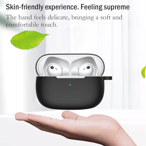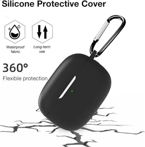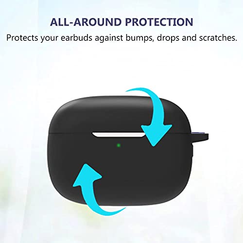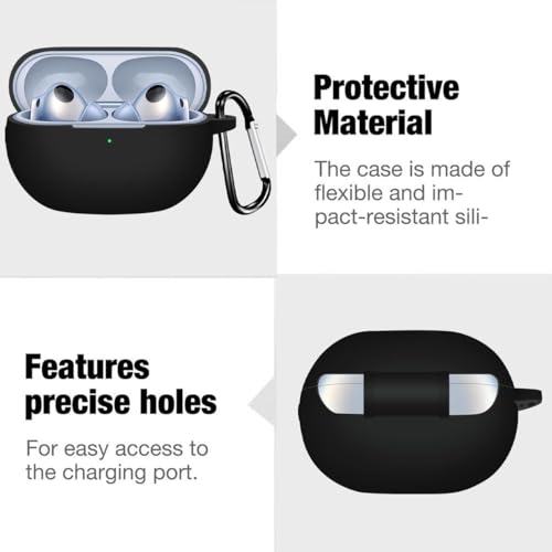 Generic - Silicone Case Compatible with Honor EarBuds 3 Pro Earbuds, Soft Silicone Protective Case Cover, Shockproof Sleeve with Carabiner hook - Black