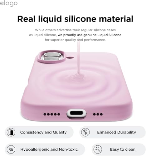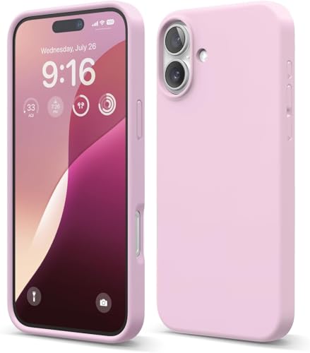 ELMO3EZZ - جراب حماية خلفي سيليكون سائل بتصميم رفيع مضاد للصدمات والخدش ببطانة ناعمة مايكروفايبر متوافق مع موبايل آيفون 16 (وردي)