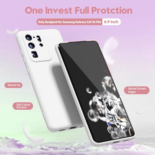 Generic - Silicone Case Compatible with Samsung Galaxy S20 Ultra Soft Silicone Gel Rubber Shockproof Cover Matte Finish with Cloth Inner Lining (White)