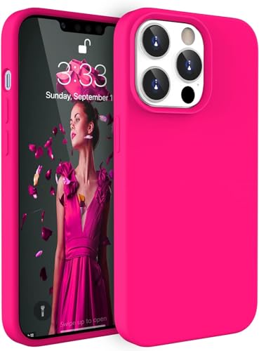ELMO3EZZ - Silicone Case Designed for iPhone 13 Pro Max 6.7", Soft Liquid Silicone Rubber Gel Shockproof Bumper Protective Case with Microfiber Lining for iPhone 13 Pro Max (2021), Neon Red