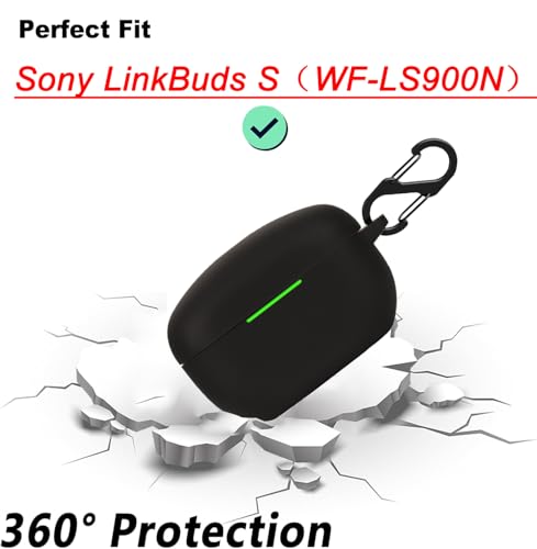 BIIULHCI - جراب من السيليكون لسماعات أذن سوني لينك بادز S WF-LS900N، حافظة واقية مضادة للصدمات، غطاء حماية جلدي لسوني لينك بادز S WF-LS900N مع سلسلة مفاتيح (أسود)