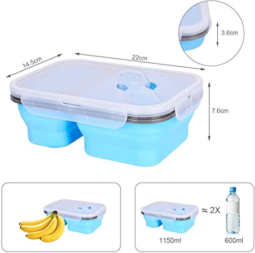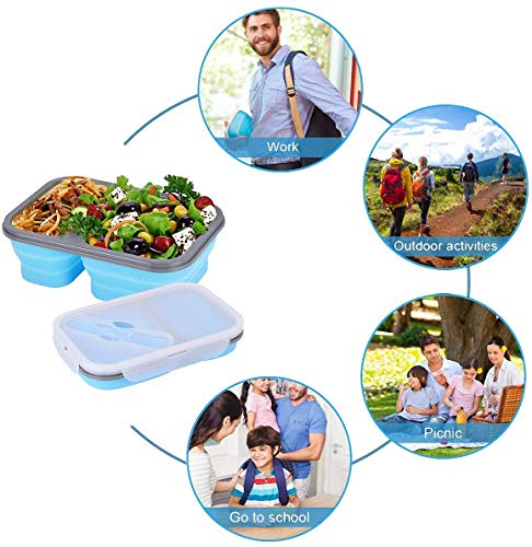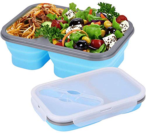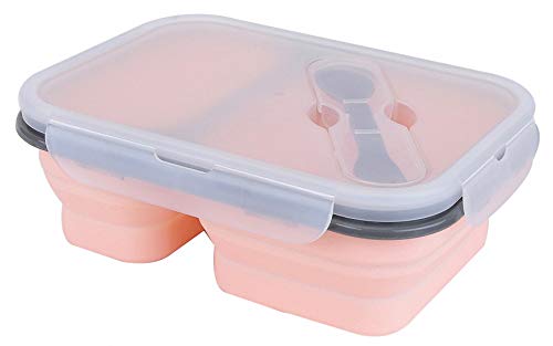 Generic - Silicone Collapsible Bento Storage Lunch Food Container Box for Microwave Freezer Dishwasher Safe BPA Free 2 Compartments