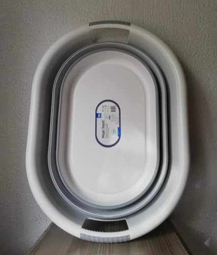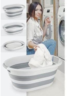 - FOLDABLE DESIGN: Easily open and close to save space for storage 40 L Large capacity: Jumbo size suitable for laundry or multiple use High quality silicone Material: durable, flexible, water resistant and easy to clean Multiuse: Use as laundry bath, laundry basket, or portable storage container: Perfect for travel, trips, camping, and small apartments Practical oval shape: helps to use comfortably and hold during washing