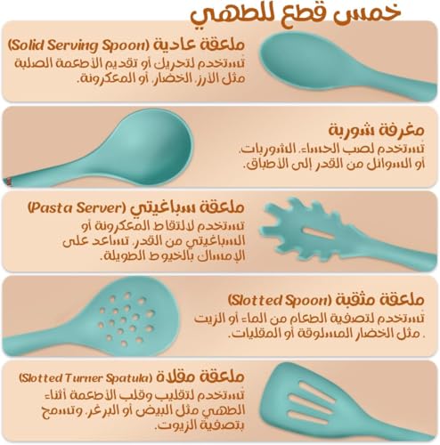 - Complete Cooking Solution: Transform your kitchen with this 6-piece silicone utensils set — includes spatula, spoon, whisk, ladle, tongs, and holder. Everything you need for daily Egyptian home cooking or weekend feasts.