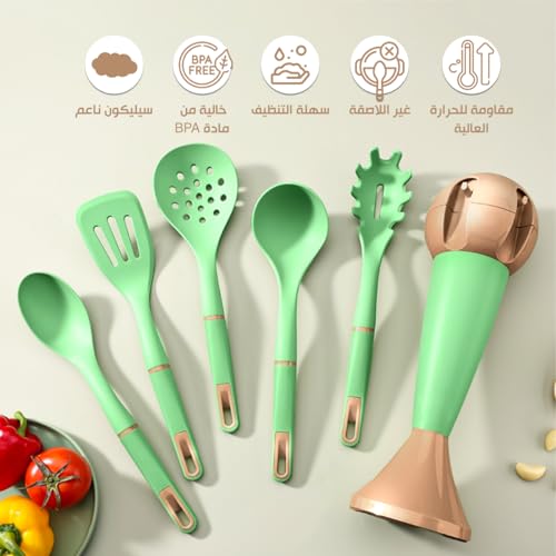 Generic - أواني طهي من السيليكون، أدوات مطبخ مقاومة للحرارة والالتصاق مع حامل، تصميم عصري للأواني وحلل الطهي مكون من 6 قطع، (لون أخضر)
