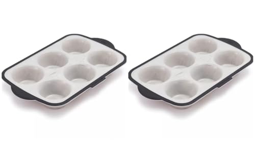 Generic - Silicone Cupcake & Donut Baking Pan – 6 Cavity Non-Stick Mold with Steel Frame, Heat-Resistant, Durable, Easy Release Muffin Tray for Cupcakes, Donuts, Jelly & Desserts (White two pieces)
