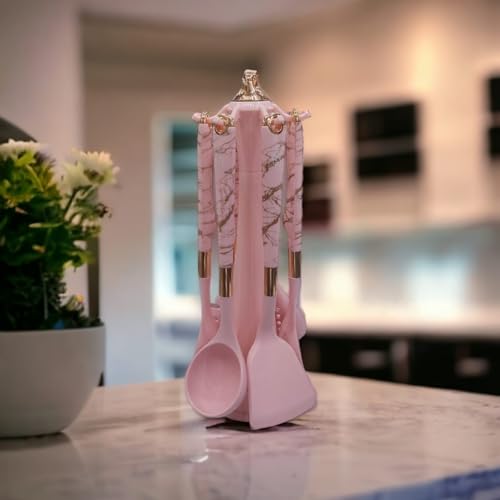 Generic - طقم توزيع سيليكون مكون من 6 قطع بمقبض بلاستيكي عالي الجودة + حامل