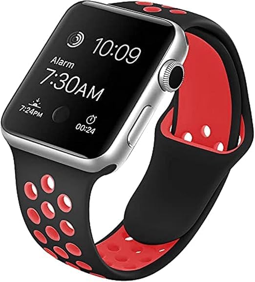 Generic - Silicone Dual Color Sport Band for Apple Watch Series 2,3,4,5,6,SE,8,Ultra (42mm/44mm/45mm/49mm, Black Red)