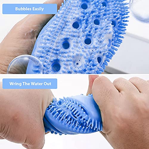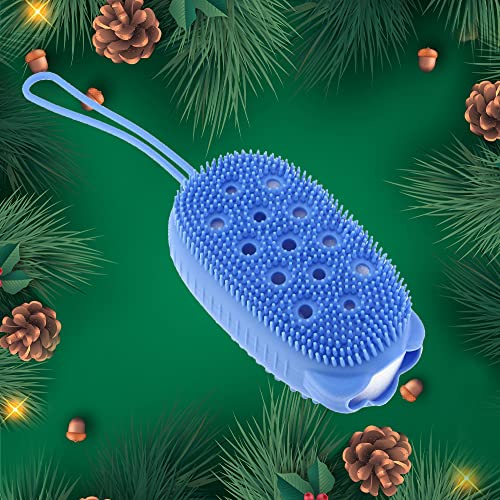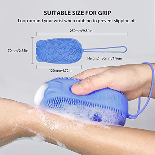 QtumTek - Silicone Exfoliating Body Scrubber, Silicone Body Brush with Two Side for Body Exfoliating and Massage Natural Bristle Natural Bristle Bath Sponge Shower Brush Suit for All Skin-Blue