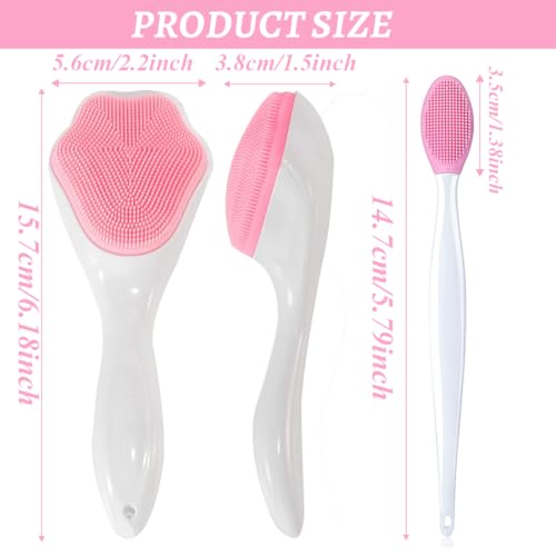 GGUFAY - Silicone Face Scrubber, 1 Piece Cat Claw Face Brush with 2 Pieces Silicone Lip Brush Double Sided Nose Blackhead Clean Brushes, Soft Bristles Exfoliating Brush Face Massager (Pink)