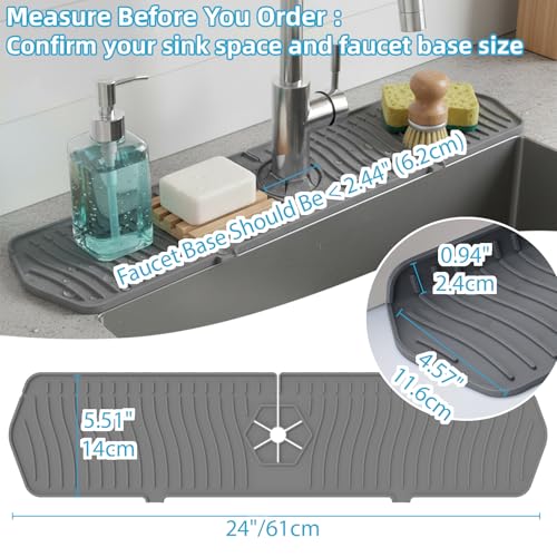 GoldenLife - Silicone Faucet Handle Drip Catcher Drying Tray Mat Dish Soap Sponge Holder Accessories Gadgets for Kitchen Counter Bathroom Kitchen Sink Splash Guard (Gray, 24")