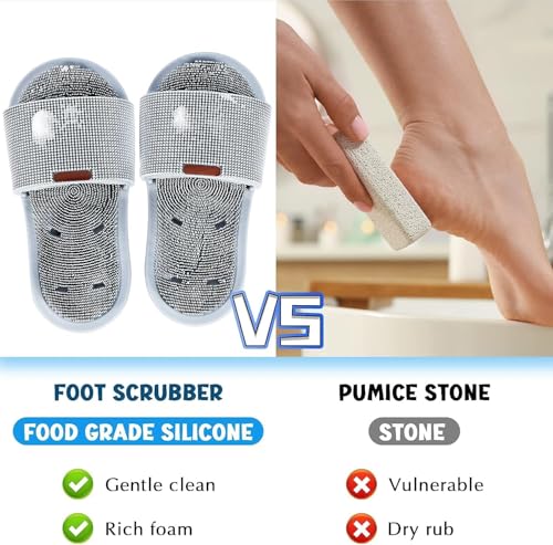 - 2-PIECE SET FOR COMPLETE CONVENIENCE: Includes two silicone foot scrubber slippers, allowing use in multiple areas or shared use among family members. The slipper-shaped design enhances comfort and makes foot cleaning natural and effortless while ensuring optimal coverage.