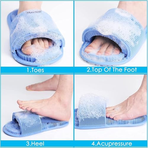 - DEEP CLEANING & MASSAGING IN ONE PRODUCT: Designed with hundreds of soft silicone bristles, these slipper-style mats scrub between toes, exfoliate dead skin, and gently massage the feet. Perfect for effortless cleaning without bending, making daily foot care comfortable and enjoyable for all ages.