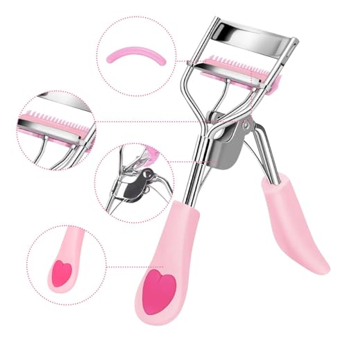 STUDIO LIMITED - أداة تجعيد الرموش بمقبض من السيليكون مع مشط مدمج، أفضل أداة رموش محمولة وصغيرة الحجم