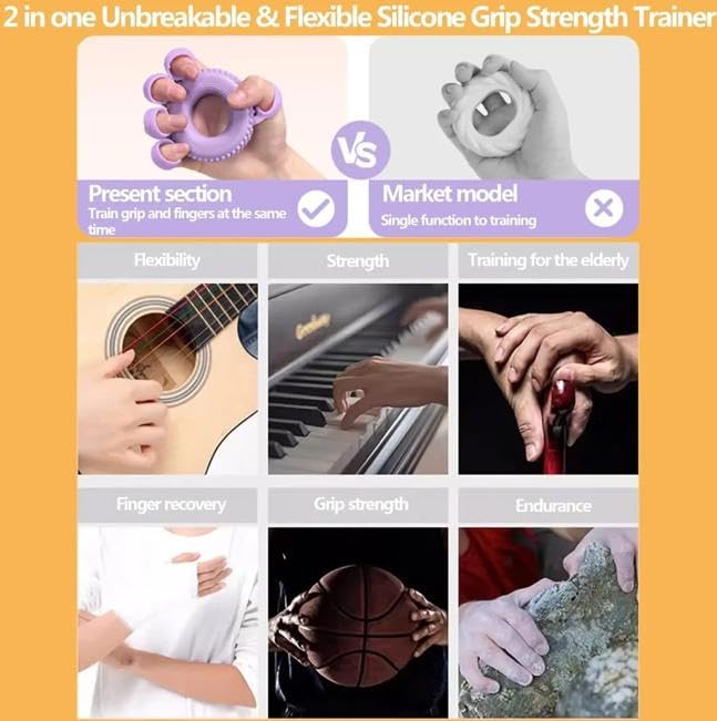 - DUAL FUNCTIONALITY: Features both grip strengthening and finger flexibility training capabilities in one ergonomic silicone device for comprehensive hand exercise