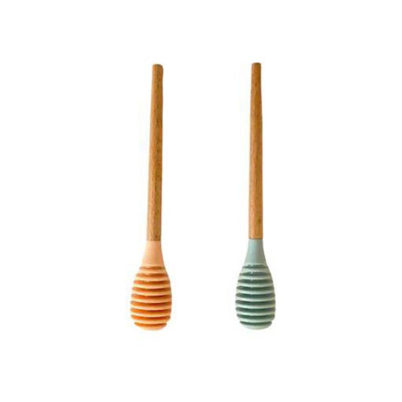 Generic - Silicone Honey Spoon With Wooden Handle 18cm Honey Dipping Spoon, Spiral Kitchen Tool (Code 8786 Random Color) - 2 Pieces - By Rana Store
