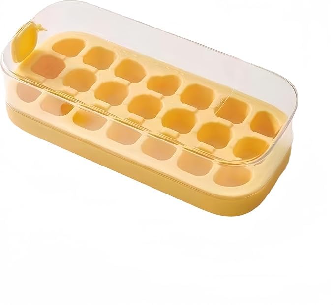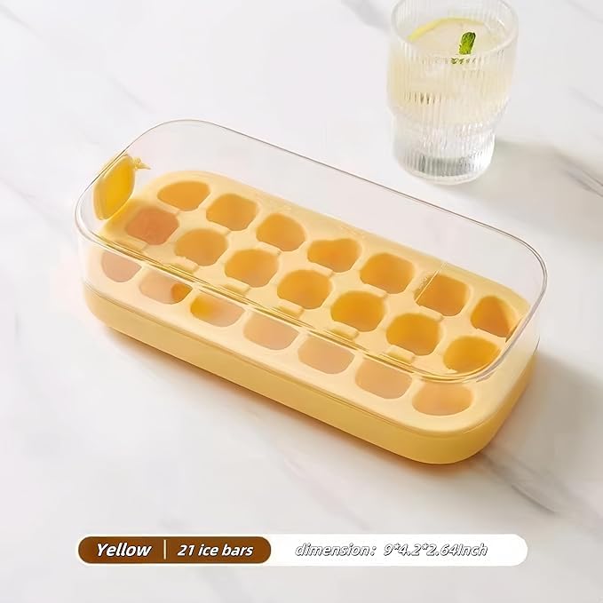 Generic - Silicone Ice Cube Tray Set with Lid and Bin - Easy Release, Stackable and Reusable, 21 pcs Small to Large Cubes Mold for Freezer - BPA Free, Suitable for Whiskey, Cocktails, Coffee, Baby Food (Yellow)