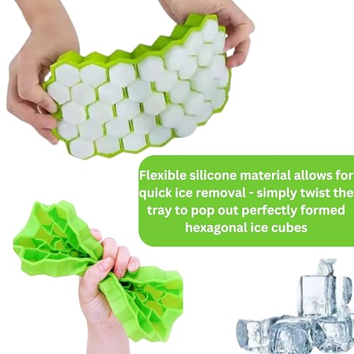 - صينية مكعبات الثلج سهلة الفك من السيليكون: تسمح مادة السيليكون المرنة بإزالة الثلج بسرعة - ببساطة قم بلف الصينية لإخراج مكعبات الثلج السداسية المشكلة بشكل جيد