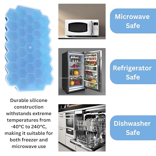 - قوالب مكعبات ثلج من السيليكون المقاوم للحرارة للفريزر والميكروويف: هيكل سيليكون متين يتحمل درجات الحرارة القصوى من -40 درجة إلى 250 درجة فهرنهايت، مما يجعله مناسبًا للاستخدام في الفريزر والميكروويف وآمن للغسل في غسالة الأطباق أيضًا