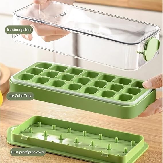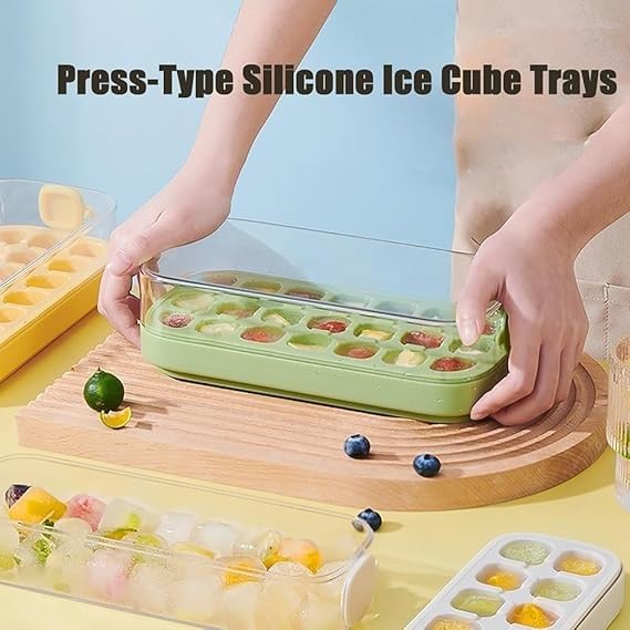 - 【Super Easy Release】Press type ice cube tray, super easy ice release, do not open the lid and touch the ice. Simply press the lid to release all the ice in seconds. Waiting a few minutes at room temperature is more conducive to releasing the ice.