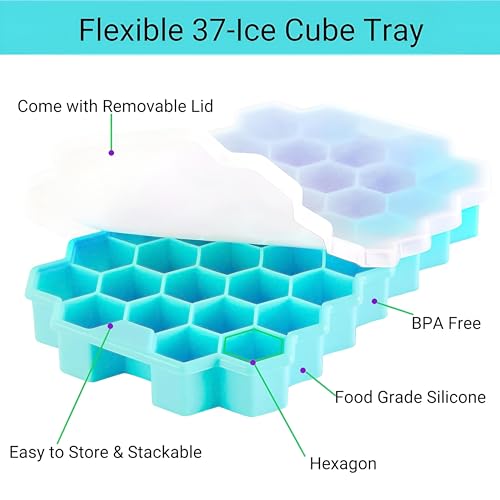 Generic - Silicone Ice Cube Trays with Lids for Freezer, BPA Free, Flexible and Easy Release Honeycomb Ice Cube Trays for 74 Small Ice Cubes for Whiskey, Cocktail, Whiskey, Cocktail, 2 Pack