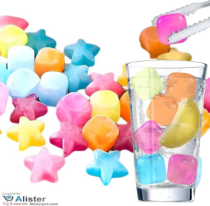 Generic - Silicone ice cubes for healthy drinks - Multi-colored, reusable star-shaped square ice cubes; randomly colored cooling tools for truly refreshing multi-faceted treats. (باكت 10 ق)