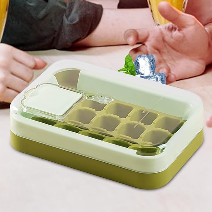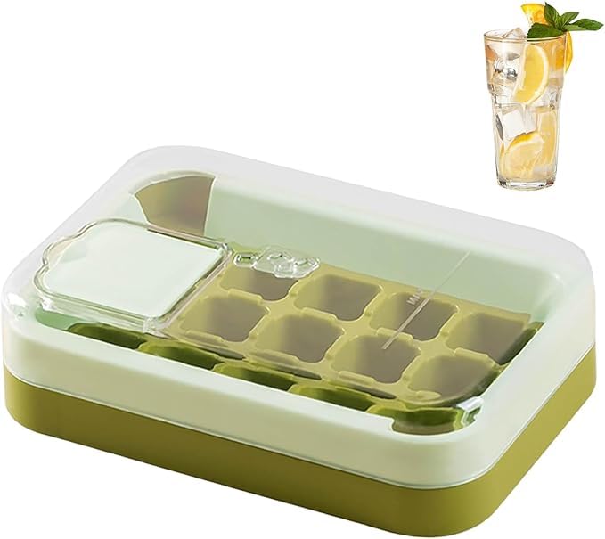 Generic - قالب مكعبات ثلج من السيليكون بغطاء للفريزر 16.5×11×4 سم سهل التعبئة ومقاوم للانسكاب بتحرير بالضغط باللمس قابل لإعادة الاستخدام للمشروبات والكوكتيلات والشاي وأكثر من ذلك، متعددة الألوان (أخضر)