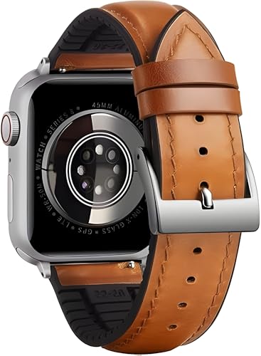 Next store - حزام جلدي من الشمع داخلي من السيليكون متوافق مع اي واتش سيريس1/2/3/4/5/6/7/8/9 مقاس 38/40/41ملم