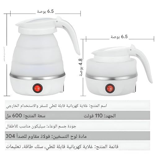 Generic - Silicone Kettle - Sleek Collapsible Electric Water Boiler with 600W Efficiency, Perfect for Home Use or Adventure Traveling with US Plug Support (White)