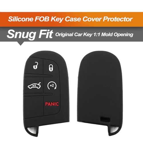 - The rubber car key covers compatible with Dodge Challenger Charger Dart Durango Journey Viper Chrysler 200 300 Fiat 500 500L 500X Jeep Renegade Grand Cherokee Compass Ram Promaster 1500 2500 3500 Dakota Smart 5 Buttons key fob.