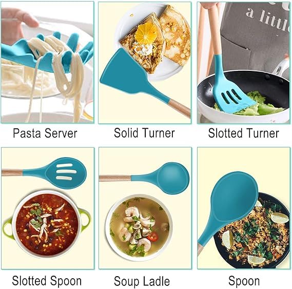 - Whether you're a professional cooker or beginner, the silicone wood handle kitchen utensils set is the perfect choice for you to improve your cooking experience and enjoy prepping delicious meals with comfort and easy