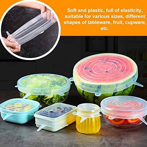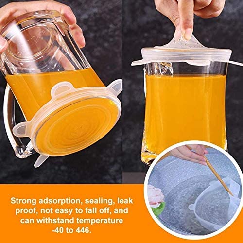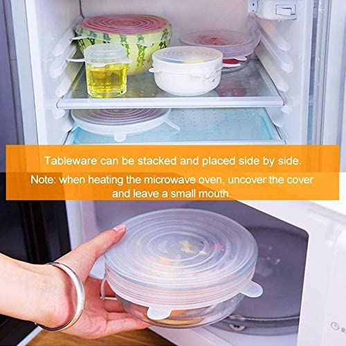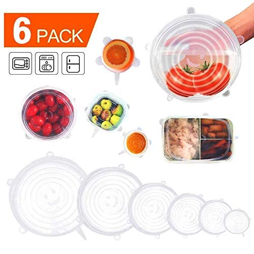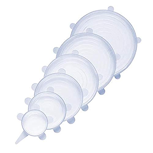 Spaceshoop - أغطية سيليكون للأطعمة والأوعية، أغطية مرنة قابلة لإعادة الاستخدام للأكواب والعلب والمجات، مقاسات متعددة، شفاف، طقم من 6 قطع