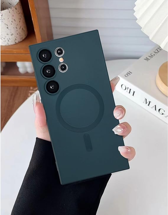 Generic - Silicone Magnetic Case With Camera All-Round Protection, Shockproof Case Cover For Samsung Galaxy S24 Ultra (Green)