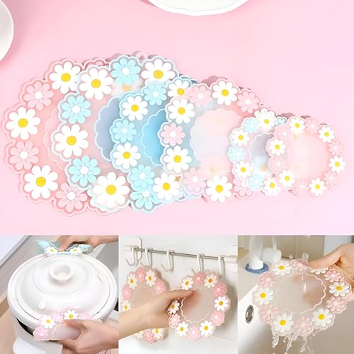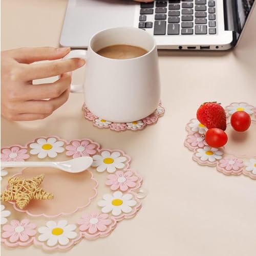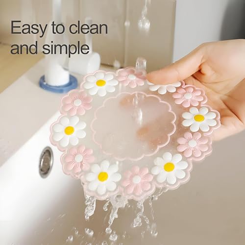 Generic - Silicone Mats - Circular non-slip daisy flower shaped heat-resistant pads for holding hot pots, pans, tableware, and cups while protecting kitchen surfaces in pink and baby blue (color-baby blue)