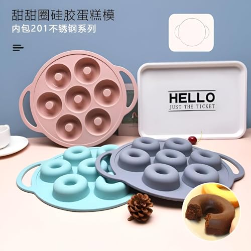 Generic - قالب سيليكون – غير لاصق متعدد الألوان بسبع فتحات لصنع الدونات والبيجل والكعك إطار من الفولاذ المقاوم للصدأ متين سهل الإزالة مناسب لغسالة الصحون ملحق خبز عملي